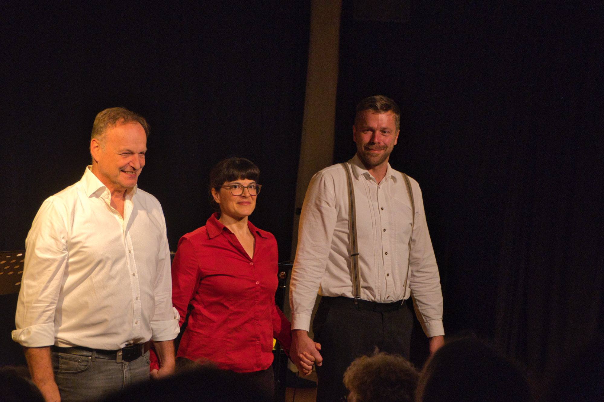 Das Stückentwicklung war ein Experiment. Die Grundstruktur kam von mir, doch die Beiden haben viele Formulierungen und Szenenideen mit hinein gebracht.